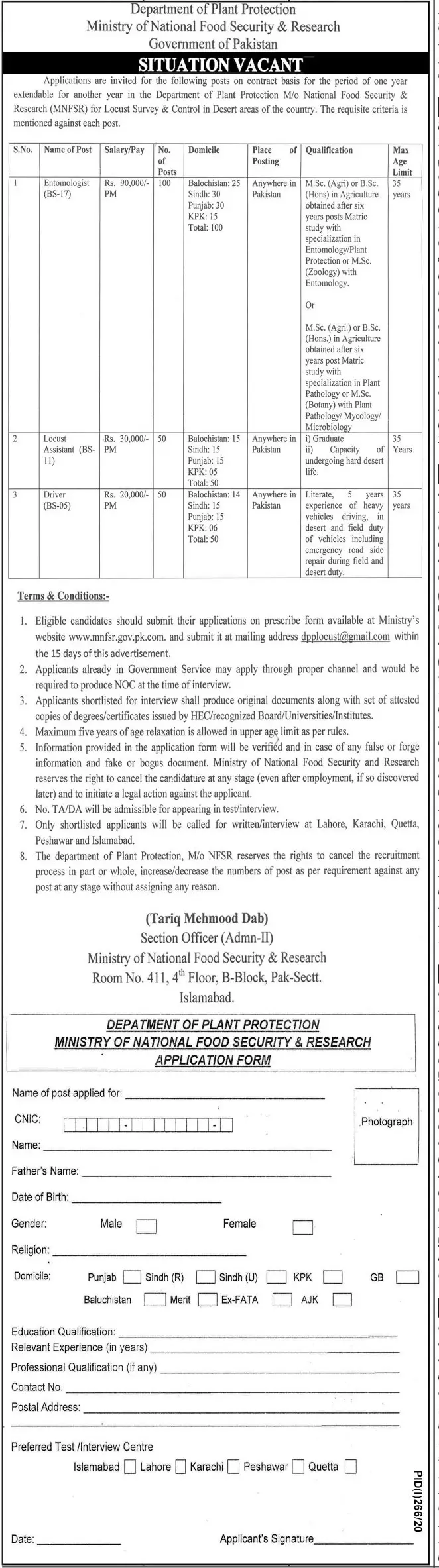Jobs Ministry of National Food Security & Research Islamabad announce the career opportunities for the post of in for the fresh and experienced candidates on basis who have degree. Posted date of this post is 19/07/2020 and the last date is 03/08/2020. if you are eligible for this job apply before due date.