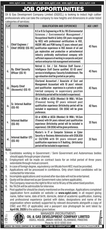 Oil & Gas Development Company Limited OGDCL Islamabad Jobs
