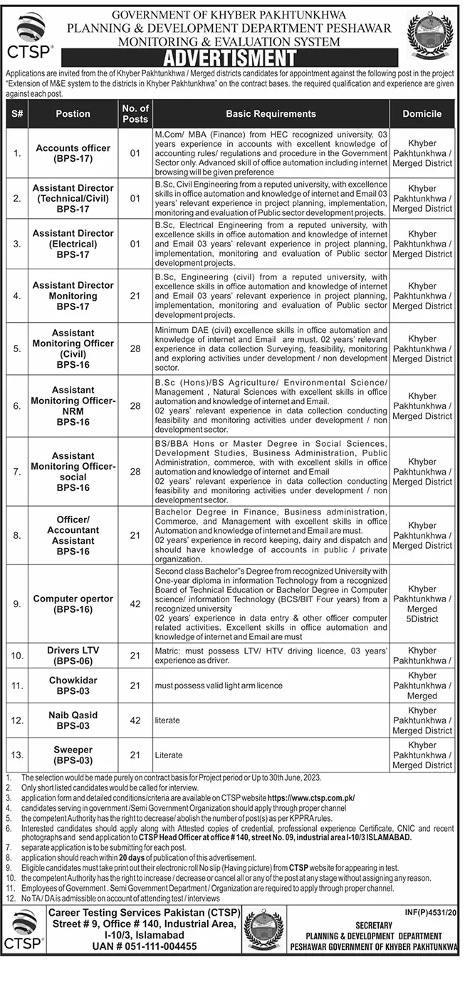 Jobs Planning & Development Department Peshawar Kpk announce the career opportunities for the post of in for the fresh and experienced candidates on basis who have degree. Posted date of this post is 29/11/2020 and the last date is 17/12/2020. if you are eligible for this job apply before due date.