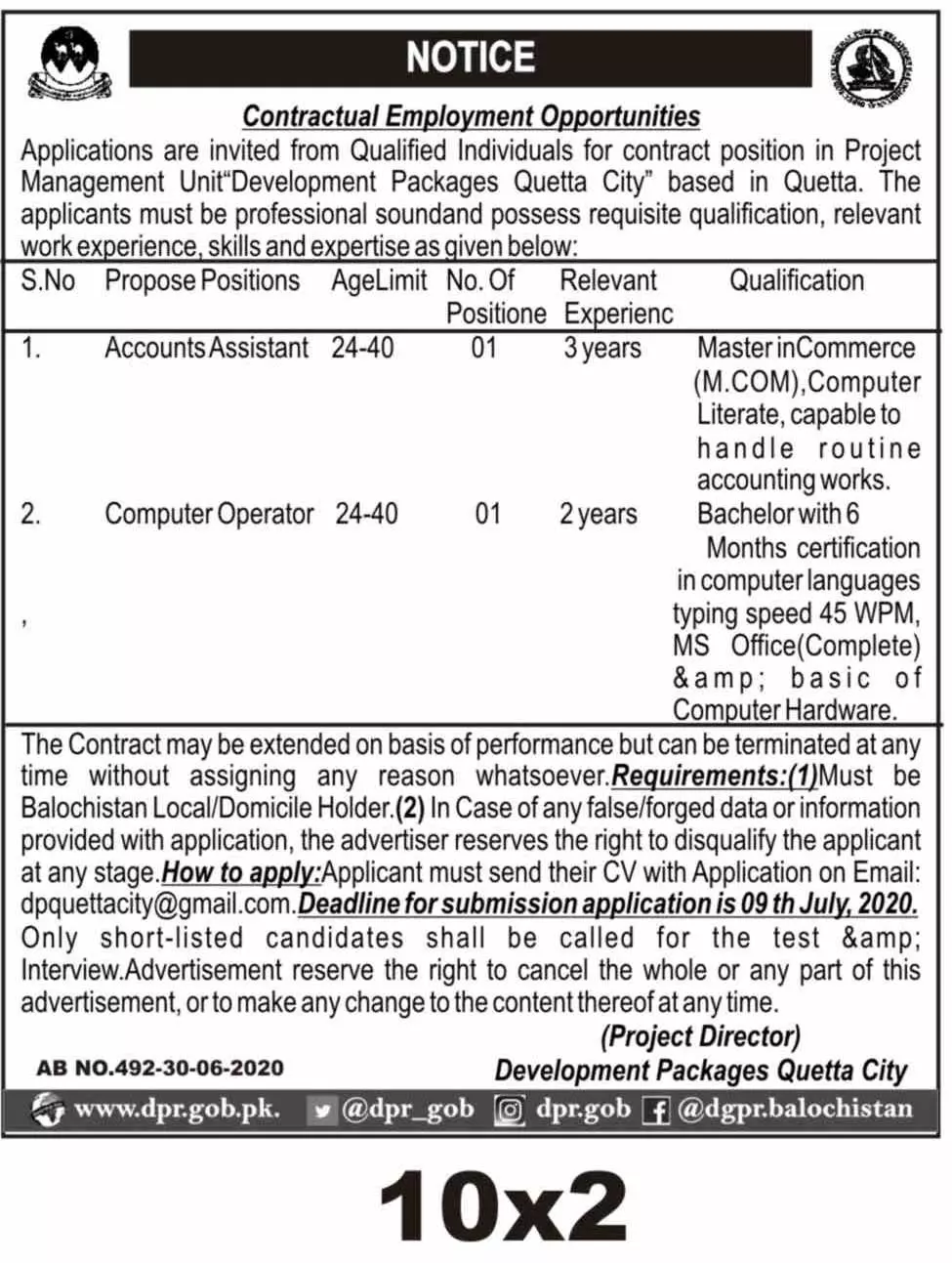 Jobs Project Management Unit Quetta Balochistan announce the career opportunities for the post of in for the fresh and experienced candidates on basis who have degree. Posted date of this post is 02/07/2020 and the last date is 09/07/2020. if you are eligible for this job apply before due date.