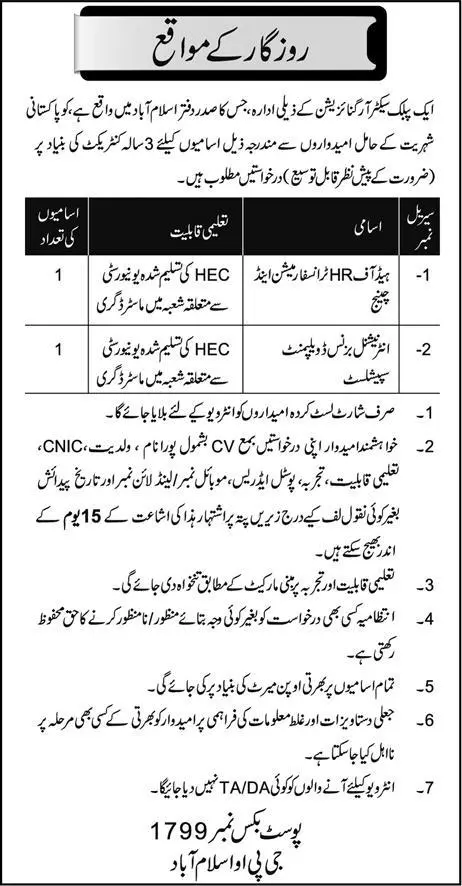 Jobs Public Sector Organization Islamabad
