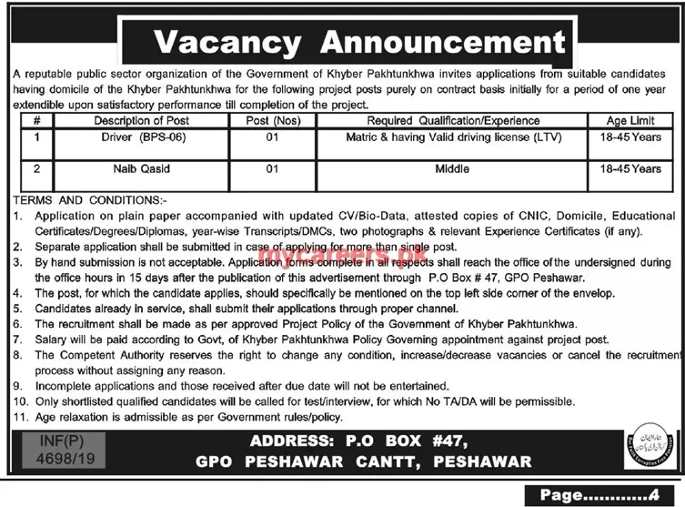Jobs Public Sector Organization Peshawar