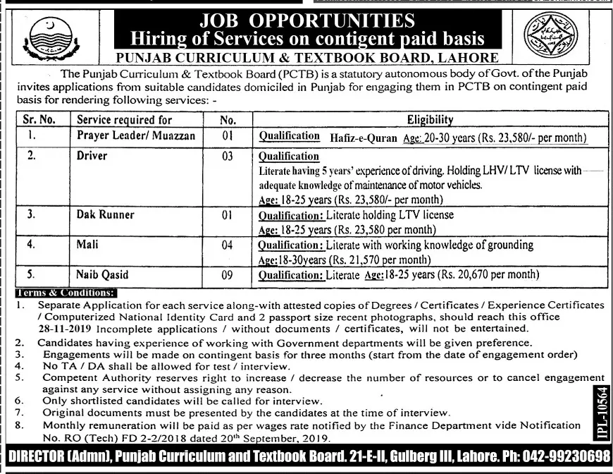 Jobs in Punjab Curriculum & Textbook Board Lahore Punjab