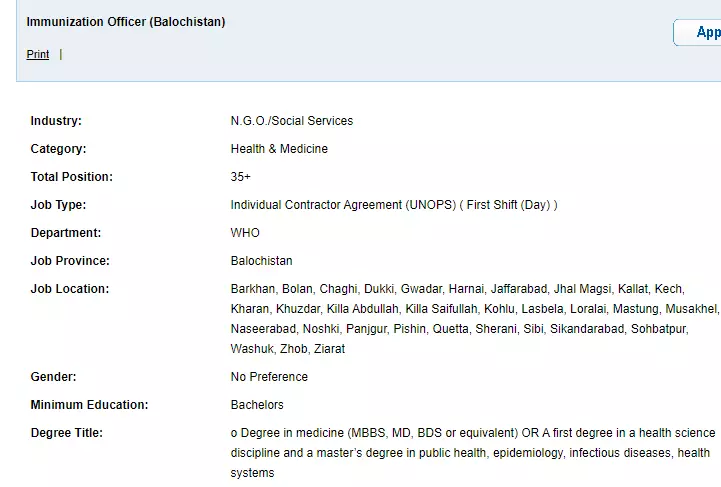 - Immunization Officer (Balochistan)