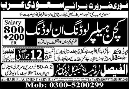 Kitchen Helper & Loading Helper Jobs 2024 In Saudi Arabia announce the Contract career opportunities for the post of See Below Ad in Saudi Arabia for the fresh and experienced candidates on Contract basis who have Check Advertisement degree. Posted date of this post is 10/07/2024 and the last date is 12/07/2024. if you are eligible for this job apply before due date.