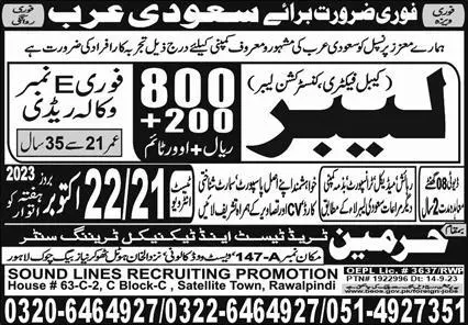 Labor & Construction Labor Jobs 2023 In Saudi Arabia announce the Contract career opportunities for the post of See Below Ad in Saudi Arabia for the fresh and experienced candidates on Contract basis who have Check Advertisement degree. Posted date of this post is 19/10/2023 and the last date is 22/10/2023. if you are eligible for this job apply before due date.