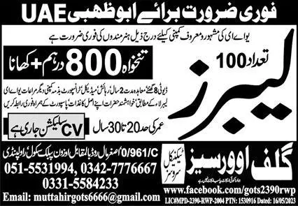 Labor Jobs Open In UAE 2023 announce the Contract career opportunities for the post of See Below Ad in United Arab Emirates for the fresh and experienced candidates on Contract basis who have Check Advertisement degree. Posted date of this post is 18/05/2023 and the last date is 25/05/2023. if you are eligible for this job apply before due date.