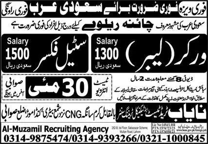Labor & Steel Fixer Jobs 2023 In Saudi Arabia announce the Contract career opportunities for the post of See Below Ad in Saudi Arabia for the fresh and experienced candidates on Contract basis who have Check Advertisement degree. Posted date of this post is 27/05/2023 and the last date is 30/05/2023. if you are eligible for this job apply before due date.