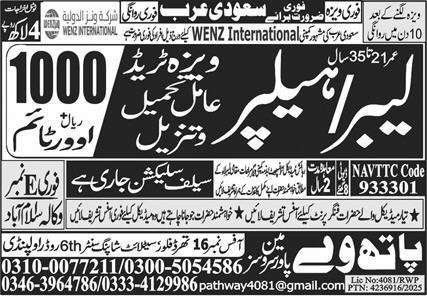 Labour And Helper Jobs in Saudia Arabia 2025 announce the Contract career opportunities for the post of See Below Ad in Saudi Arabia for the fresh and experienced candidates on Contract basis who have Check Advertisement degree. Posted date of this post is 16/12/2025 and the last date is 26/12/2025. if you are eligible for this job apply before due date.