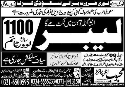 Labour Jobs in Saudia Arabia 2025 announce the Contract career opportunities for the post of See Below Ad in Saudi Arabia for the fresh and experienced candidates on Contract basis who have Check Advertisement degree. Posted date of this post is 16/12/2025 and the last date is 25/12/2025. if you are eligible for this job apply before due date.