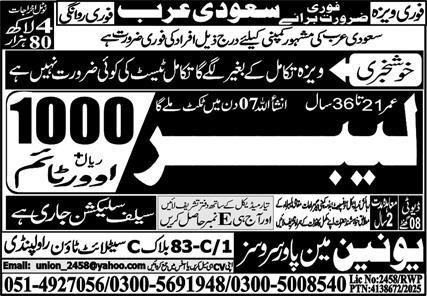 Labour Jobs in Saudia Arabia 2026 announce the Contract career opportunities for the post of See Below Ad in Saudi Arabia for the fresh and experienced candidates on Contract basis who have Check Advertisement degree. Posted date of this post is 13/01/2026 and the last date is 17/01/2026. if you are eligible for this job apply before due date.