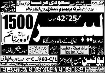 Labour Jobs in Saudia Arabia 2026 announce the Contract career opportunities for the post of See Below Ad in Saudi Arabia for the fresh and experienced candidates on Contract basis who have Check Advertisement degree. Posted date of this post is 15/01/2026 and the last date is 23/01/2026. if you are eligible for this job apply before due date.