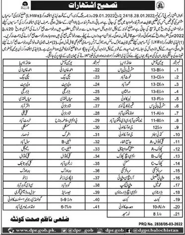 Lady Health Worker Jobs in Quetta 2022 announce the Contract career opportunities for the post of See Below Ad in Balochistan, Quetta for the fresh and experienced candidates on Contract basis who have Check Advertisement degree. Posted date of this post is 06/03/2022 and the last date is 20/03/2022. if you are eligible for this job apply before due date.