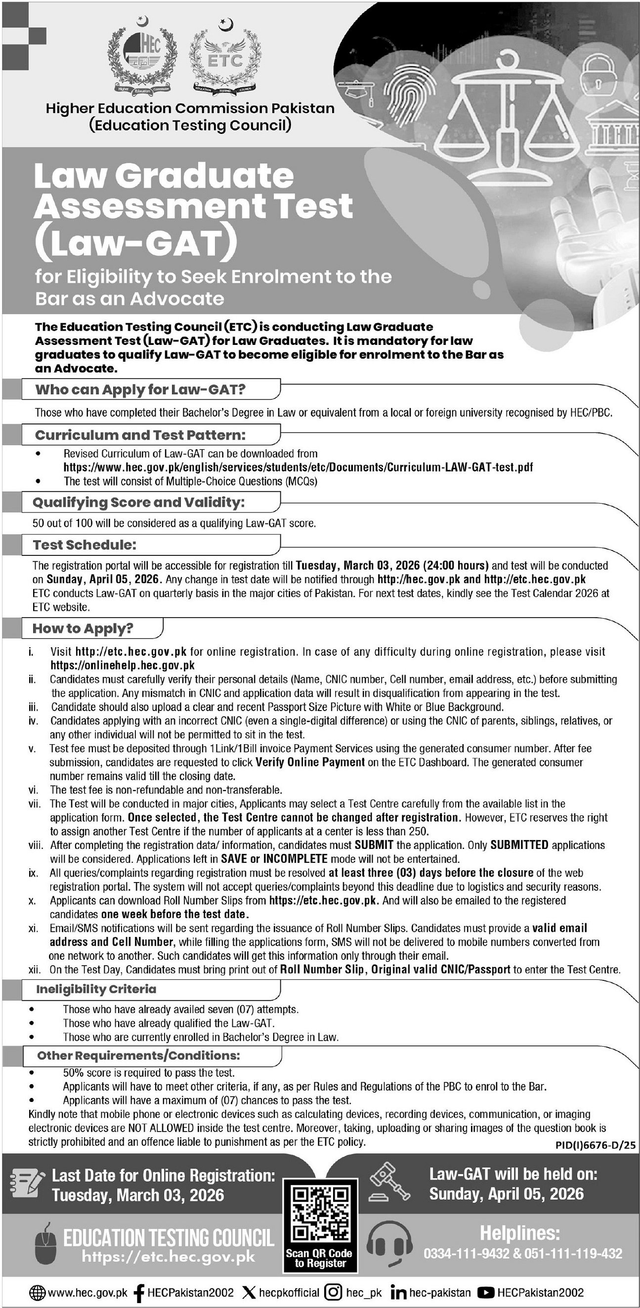 LAT Assessment At Higher Education Commission HEC announce the Contract career opportunities for the post of See Below Ad in Federal, Islamabad for the fresh and experienced candidates on Contract basis who have Check Advertisement degree. Posted date of this post is 15/02/2026 and the last date is 05/04/2026. if you are eligible for this job apply before due date.