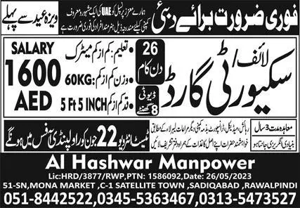 Lifeguard & Security Guard Jobs 2023 In Dubai announce the Contract career opportunities for the post of See Below Ad in Dubai for the fresh and experienced candidates on Contract basis who have Check Advertisement degree. Posted date of this post is 20/06/2023 and the last date is 22/06/2023. if you are eligible for this job apply before due date.