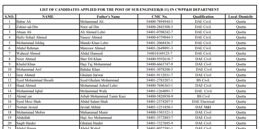 Click here to Download Complete List of Candidate of Communication and Works Department