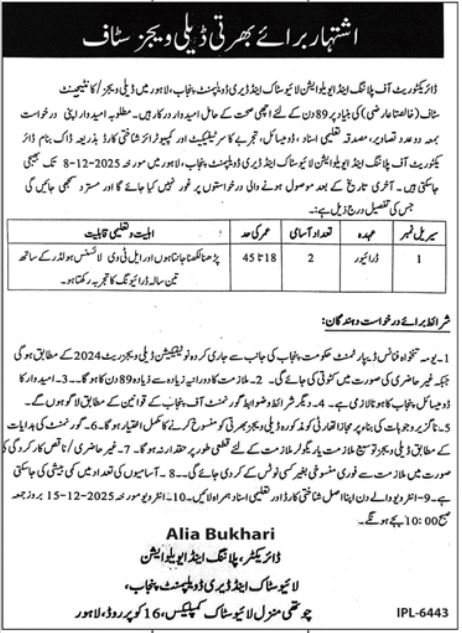 Livestock And Dairy Development Department Lahore Job 2025 announce the Contract career opportunities for the post of See Below Ad in Punjab, Lahore for the fresh and experienced candidates on Contract basis who have Check Advertisement degree. Posted date of this post is 20/11/2025 and the last date is 15/12/2025. if you are eligible for this job apply before due date.