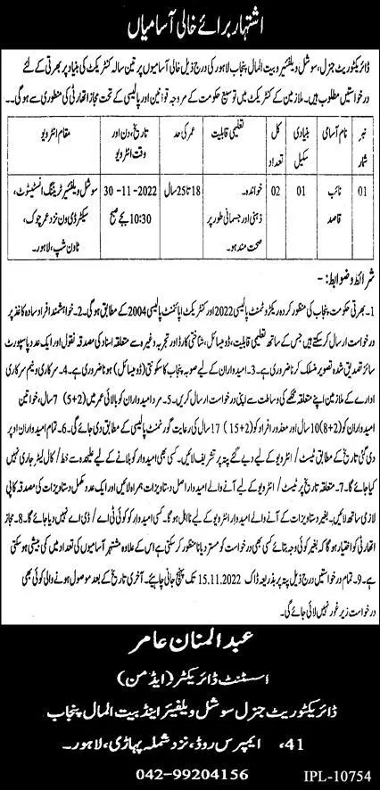Livestock and Dairy Development Department Punjab 2022 announce the Contract career opportunities for the post of See Below Ad in Punjab, Lahore for the fresh and experienced candidates on Contract basis who have Check Advertisement degree. Posted date of this post is 26/10/2022 and the last date is 15/11/2022. if you are eligible for this job apply before due date.
