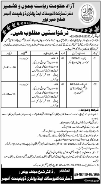 Livestock & Poultry Development Mirpur Jobs 2026 announce the Contract career opportunities for the post of See Below Ad in Azad Jammu Kashmir, Mirpur for the fresh and experienced candidates on Contract basis who have Check Advertisement degree. Posted date of this post is 26/02/2026 and the last date is 25/03/2026. if you are eligible for this job apply before due date.