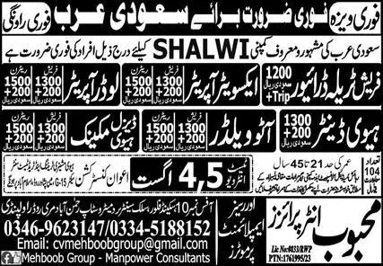 Loader Operator & Excavator Operator Jobs 2023 In KSA announce the Contract career opportunities for the post of See Below Ad in Saudi Arabia for the fresh and experienced candidates on Contract basis who have Check Advertisement degree. Posted date of this post is 02/08/2023 and the last date is 05/08/2023. if you are eligible for this job apply before due date.