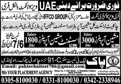Machine Operator & Assistant Machine Operator Jobs 2023 announce the Contract career opportunities for the post of See Below Ad in United Arab Emirates for the fresh and experienced candidates on Contract basis who have Check Advertisement degree. Posted date of this post is 03/06/2023 and the last date is 07/06/2023. if you are eligible for this job apply before due date.