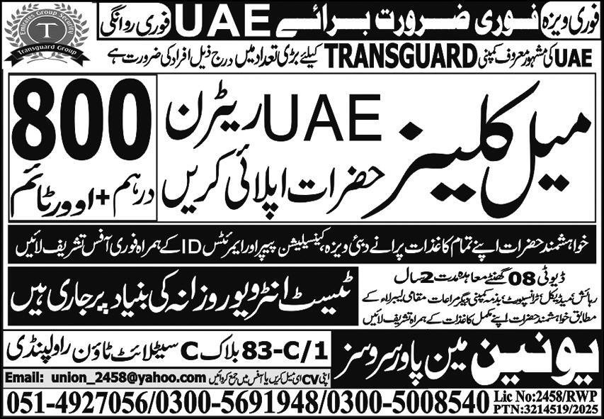 Male Cleaner Jobs in United Arab Emerities UAE 2025 announce the Contract career opportunities for the post of See Below Ad in United Arab Emirates for the fresh and experienced candidates on Contract basis who have Check Advertisement degree. Posted date of this post is 19/11/2025 and the last date is 29/11/2025. if you are eligible for this job apply before due date.