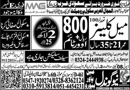 Male Cleaner Jobs Open In Saudi Arabia 2026 announce the Contract career opportunities for the post of See Below Ad in Saudi Arabia for the fresh and experienced candidates on Contract basis who have Check Advertisement degree. Posted date of this post is 22/04/2026 and the last date is 30/04/2026. if you are eligible for this job apply before due date.
