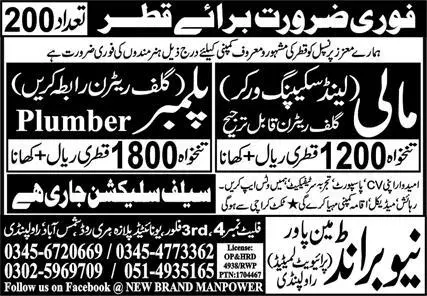 Mali and Plumber Jobs In Qatar 2023 announce the Contract career opportunities for the post of See Below Ad in Qatar for the fresh and experienced candidates on Contract basis who have Check Advertisement degree. Posted date of this post is 08/07/2023 and the last date is 23/07/2023. if you are eligible for this job apply before due date.