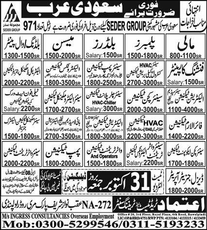 Mali And Plumber Jobs in Saudia Arabia 2025 announce the Contract career opportunities for the post of See Below Ad in Saudi Arabia for the fresh and experienced candidates on Contract basis who have Check Advertisement degree. Posted date of this post is 29/10/2025 and the last date is 31/10/2025. if you are eligible for this job apply before due date.