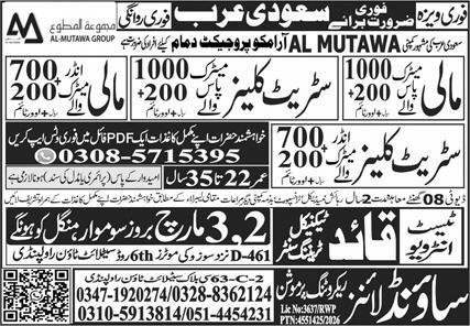 Mali And Street Cleaner Jobs in Saudia Arabia 2026 announce the Contract career opportunities for the post of See Below Ad in Saudi Arabia for the fresh and experienced candidates on Contract basis who have Check Advertisement degree. Posted date of this post is 02/03/2026 and the last date is 03/03/2026. if you are eligible for this job apply before due date.