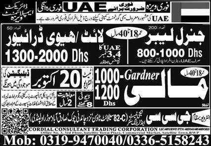Mali & General Labor Jobs 2025 In United Arab Emerities 2025 announce the Contract career opportunities for the post of See Below Ad in United Arab Emirates for the fresh and experienced candidates on Contract basis who have Check Advertisement degree. Posted date of this post is 09/10/2025 and the last date is 22/10/2025. if you are eligible for this job apply before due date.