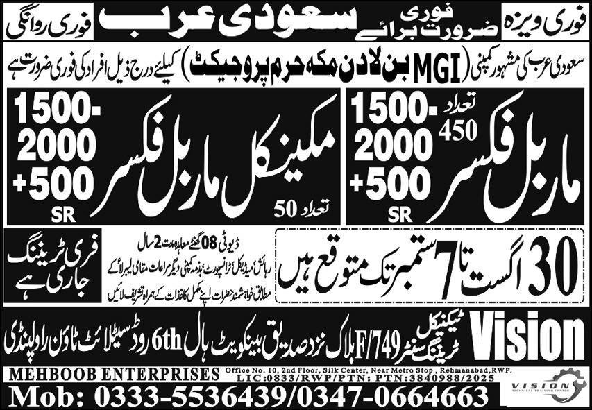 Marble Fixer & Mechanical Marble Fixer Jobs 2025
