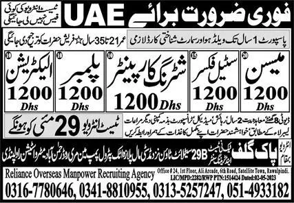 Mason And Electrician Jobs In UAE 2023 announce the Contract career opportunities for the post of See Below Ad in United Arab Emirates for the fresh and experienced candidates on Contract basis who have Check Advertisement degree. Posted date of this post is 26/05/2023 and the last date is 29/05/2023. if you are eligible for this job apply before due date.