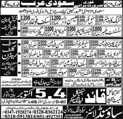 Mason And Rigger Jobs in Saudia Arabia 2025 announce the Contract career opportunities for the post of See Below Ad in Saudi Arabia for the fresh and experienced candidates on Contract basis who have Check Advertisement degree. Posted date of this post is 03/10/2025 and the last date is 05/10/2025. if you are eligible for this job apply before due date.