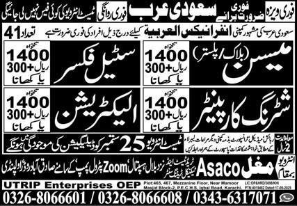 Mason And Steel Fixer Jobs in Saudia Arabia 2025 announce the Contract career opportunities for the post of See Below Ad in Saudi Arabia for the fresh and experienced candidates on Contract basis who have Check Advertisement degree. Posted date of this post is 22/09/2025 and the last date is 25/09/2025. if you are eligible for this job apply before due date.