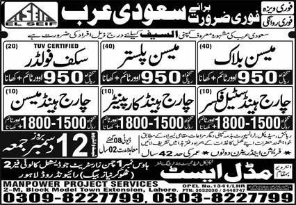 Mason Block and Mason Plaster Jobs in Saudia Arabia 2025 announce the Contract career opportunities for the post of See Below Ad in Saudi Arabia for the fresh and experienced candidates on Contract basis who have Check Advertisement degree. Posted date of this post is 10/12/2025 and the last date is 12/12/2025. if you are eligible for this job apply before due date.