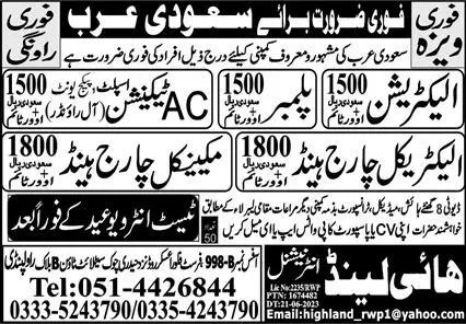 Mechanical Chargehand & AC Technician Jobs 2023 announce the Contract career opportunities for the post of See Below Ad in Saudi Arabia for the fresh and experienced candidates on Contract basis who have Check Advertisement degree. Posted date of this post is 23/06/2023 and the last date is 03/07/2023. if you are eligible for this job apply before due date.