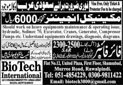 Mechanical Engineer Jobs in Saudi Arabia 2023 announce the Contract career opportunities for the post of See Below Ad in Saudi Arabia for the fresh and experienced candidates on Contract basis who have Check Advertisement degree. Posted date of this post is 08/04/2023 and the last date is 30/04/2023. if you are eligible for this job apply before due date.