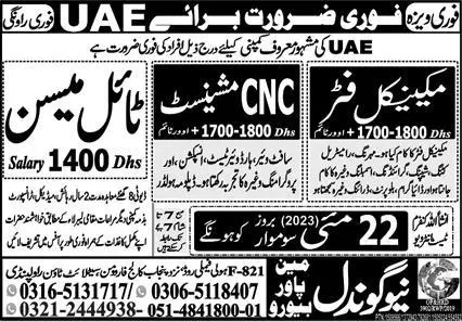 Mechanical Fitter And CNC Machinist Jobs In UAE announce the Contract career opportunities for the post of See Below Ad in United Arab Emirates for the fresh and experienced candidates on Contract basis who have Check Advertisement degree. Posted date of this post is 21/05/2023 and the last date is 22/05/2023. if you are eligible for this job apply before due date.