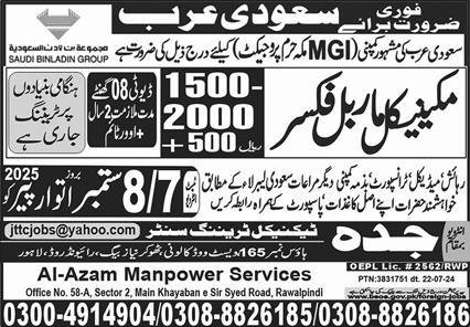 Mechanical Marbal Fixer Jobs in Saudia Arabia 2025 announce the Contract career opportunities for the post of See Below Ad in Saudi Arabia for the fresh and experienced candidates on Contract basis who have Check Advertisement degree. Posted date of this post is 06/09/2025 and the last date is 08/09/2025. if you are eligible for this job apply before due date.