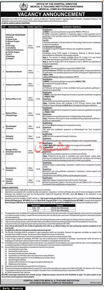 Medical Teaching Institution Peshawar Jobs 2021, announce the Permanent career opportunities for the post of See Below Ad in Khyber Pakhtunkhwa,Peshawar for the fresh and experienced candidates on Permanent basis who have Check Advertisement degree. Posted date of this post is 09/03/2021 and the last date is 26/03/2021. if you are eligible for this job apply before due date.