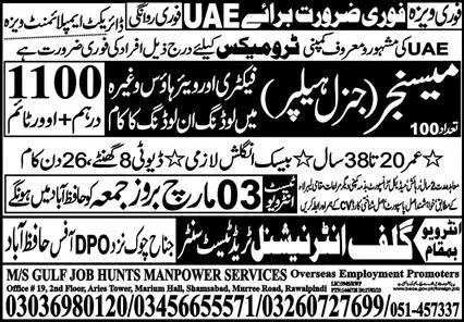 Messenger required in UAE 2023 announce the Contract career opportunities for the post of See Below Ad in United Arab Emirates for the fresh and experienced candidates on Contract basis who have Check Advertisement degree. Posted date of this post is 02/03/2023 and the last date is 03/03/2023. if you are eligible for this job apply before due date.