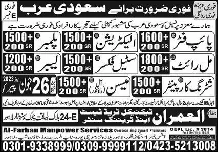Millwright Technician & Steel Fixer Jobs 2023 Saudi Arabia announce the Contract career opportunities for the post of See Below Ad in Saudi Arabia for the fresh and experienced candidates on Contract basis who have Check Advertisement degree. Posted date of this post is 24/06/2023 and the last date is 26/06/2023. if you are eligible for this job apply before due date.