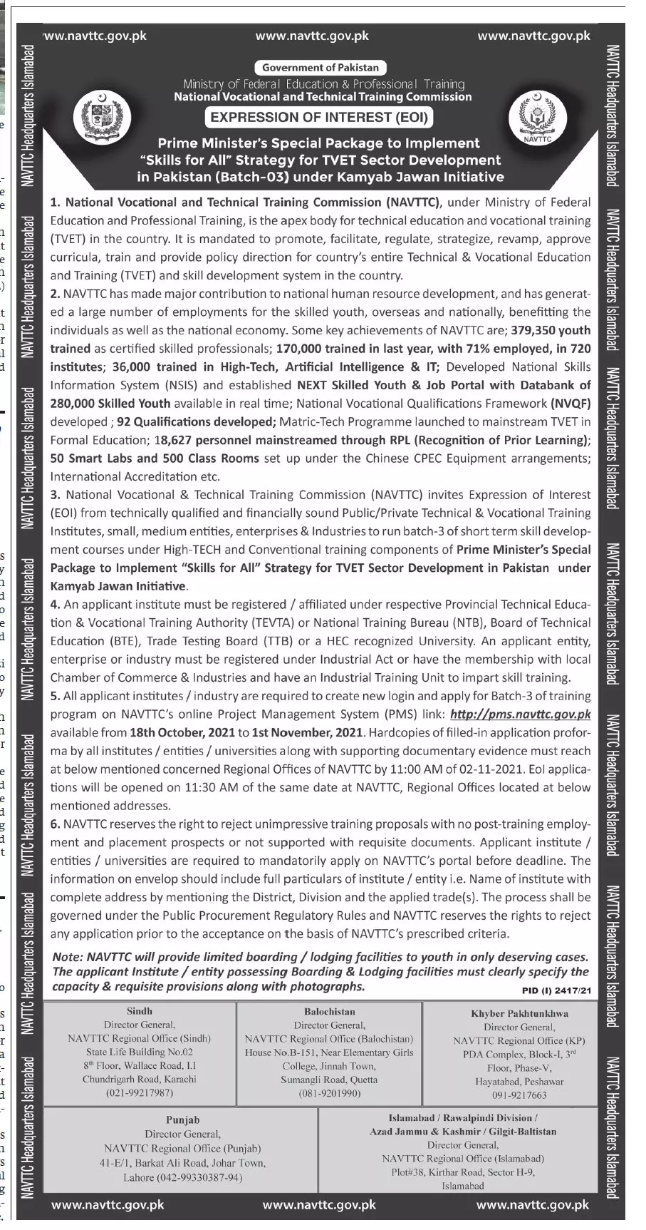 Ministry of Fedral Education Professional Training announce the Adhoc career opportunities for the post of See Below Ad in Federal for the fresh and experienced candidates on Adhoc basis who have Check Advertisement degree. Posted date of this post is 18/10/2021 and the last date is 02/11/2021. if you are eligible for this job apply before due date.
