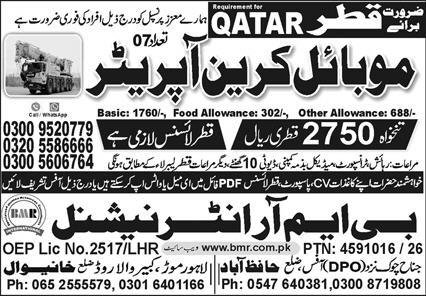 Mobile Crane Operator Jobs Open In Qatar 2026 announce the Contract career opportunities for the post of See Below Ad in Qatar for the fresh and experienced candidates on Contract basis who have Check Advertisement degree. Posted date of this post is 01/04/2026 and the last date is 08/05/2026. if you are eligible for this job apply before due date.