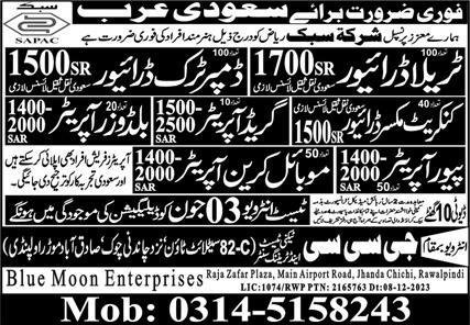 Mobile Crane Operator & Paver Operator Jobs 2024 announce the Contract career opportunities for the post of See Below Ad in Saudi Arabia for the fresh and experienced candidates on Contract basis who have Check Advertisement degree. Posted date of this post is 31/05/2024 and the last date is 03/06/2024. if you are eligible for this job apply before due date.