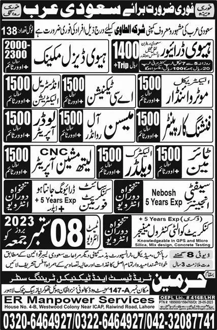 Motor Winder & Industrial Electrician Jobs 2023 announce the Contract career opportunities for the post of See Below Ad in Saudi Arabia for the fresh and experienced candidates on Contract basis who have Check Advertisement degree. Posted date of this post is 06/09/2023 and the last date is 08/09/2023. if you are eligible for this job apply before due date.