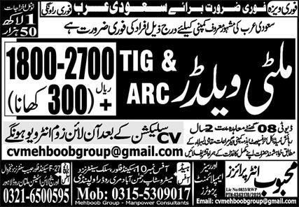 Multi Welder Jobs in Saudia Arabia 2025 announce the Contract career opportunities for the post of See Below Ad in Saudi Arabia for the fresh and experienced candidates on Contract basis who have Check Advertisement degree. Posted date of this post is 13/12/2025 and the last date is 19/12/2025. if you are eligible for this job apply before due date.