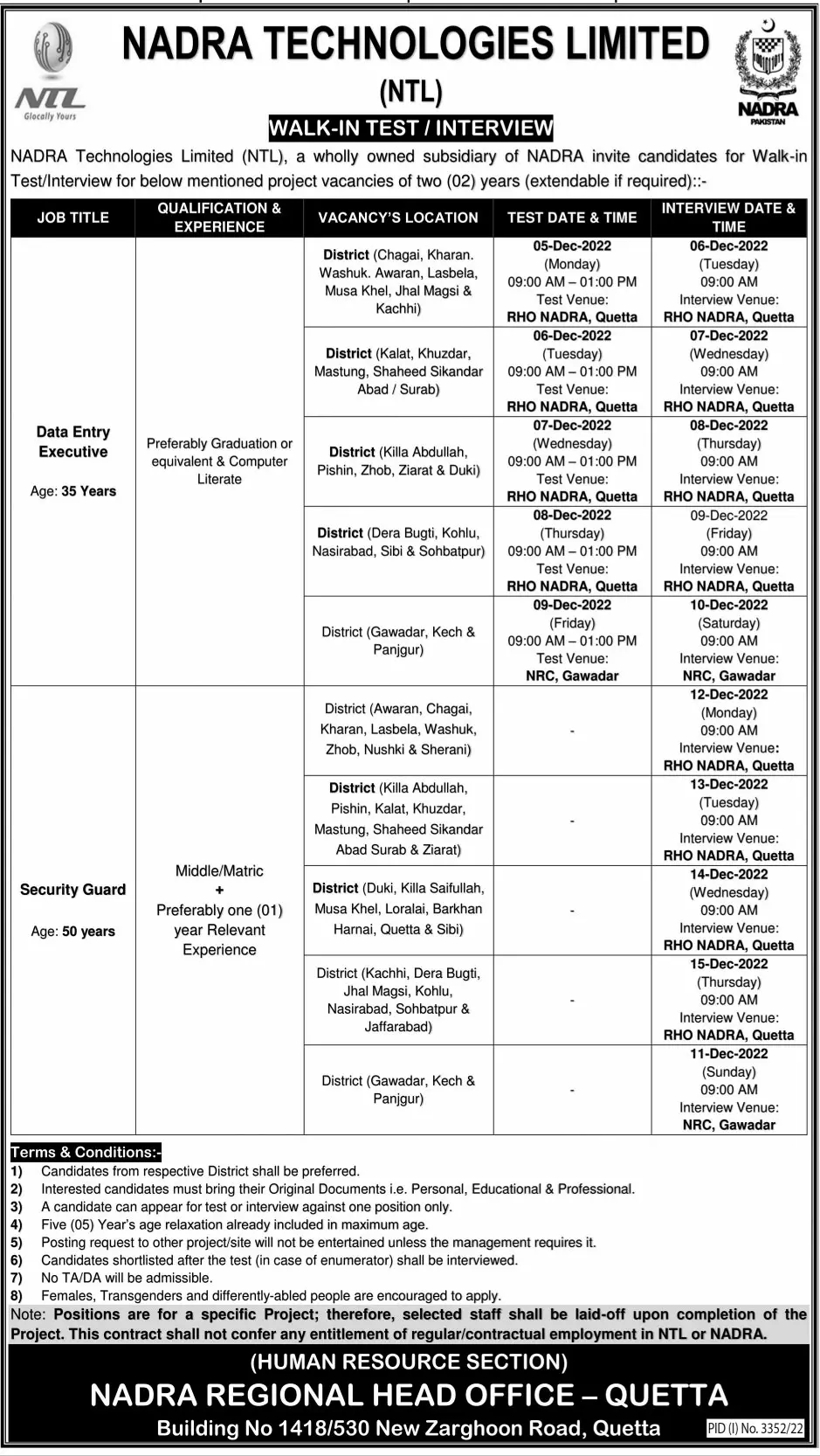 - Interested applicants can directly appear in the Interview at Regional Head Office NADRA, Building No. 1418/530, New Zarghoon Road, Quetta.