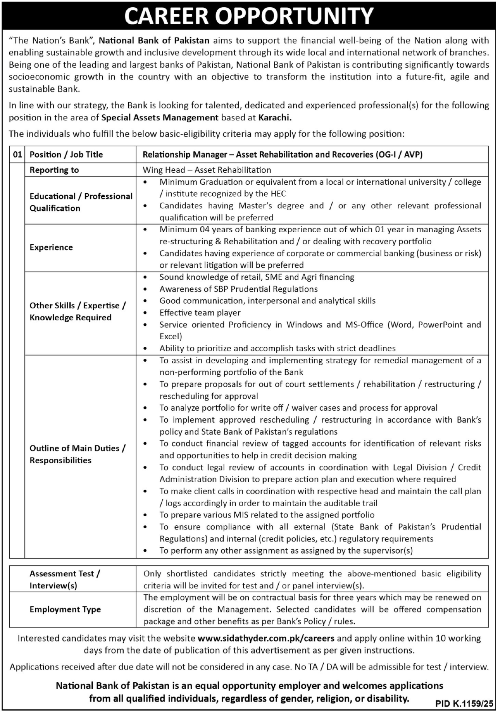 National Bank of Pakistan is an equal opportunity employer and welcomes applications from all qualified individuals, regardless of gender, religion, or disability.